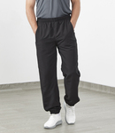 100% polyester microfibre with peached finish. Mesh lining with polyester satin lower leg lining.Showerproof and windproof.Elasticated waistband with inner drawcord.Two side pockets, right with zip.Rear pocket with tear release closure.Elasticated leg ends with ankle zips.